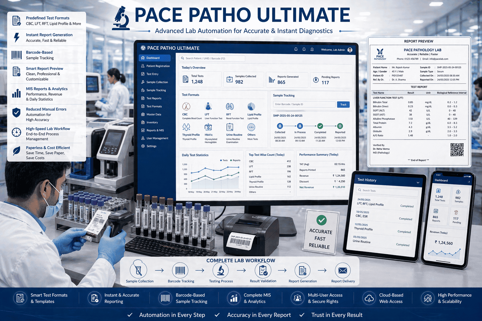 With over 25 years of industry expertise, Pace Softronix delivers a solution that labs across India can depend on.